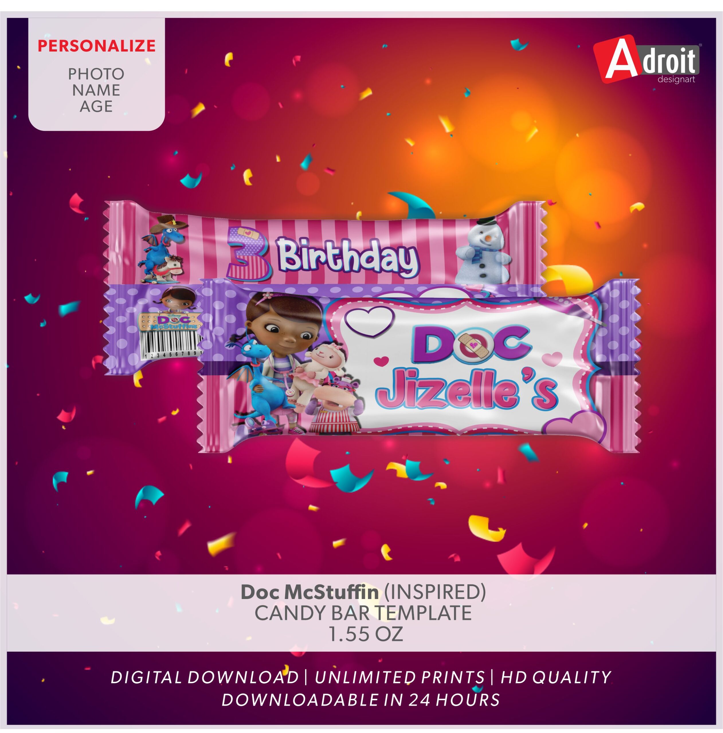 Home » Shop » Doc McStuffin (INSPIRED) CANDY BAR TEMPLATE