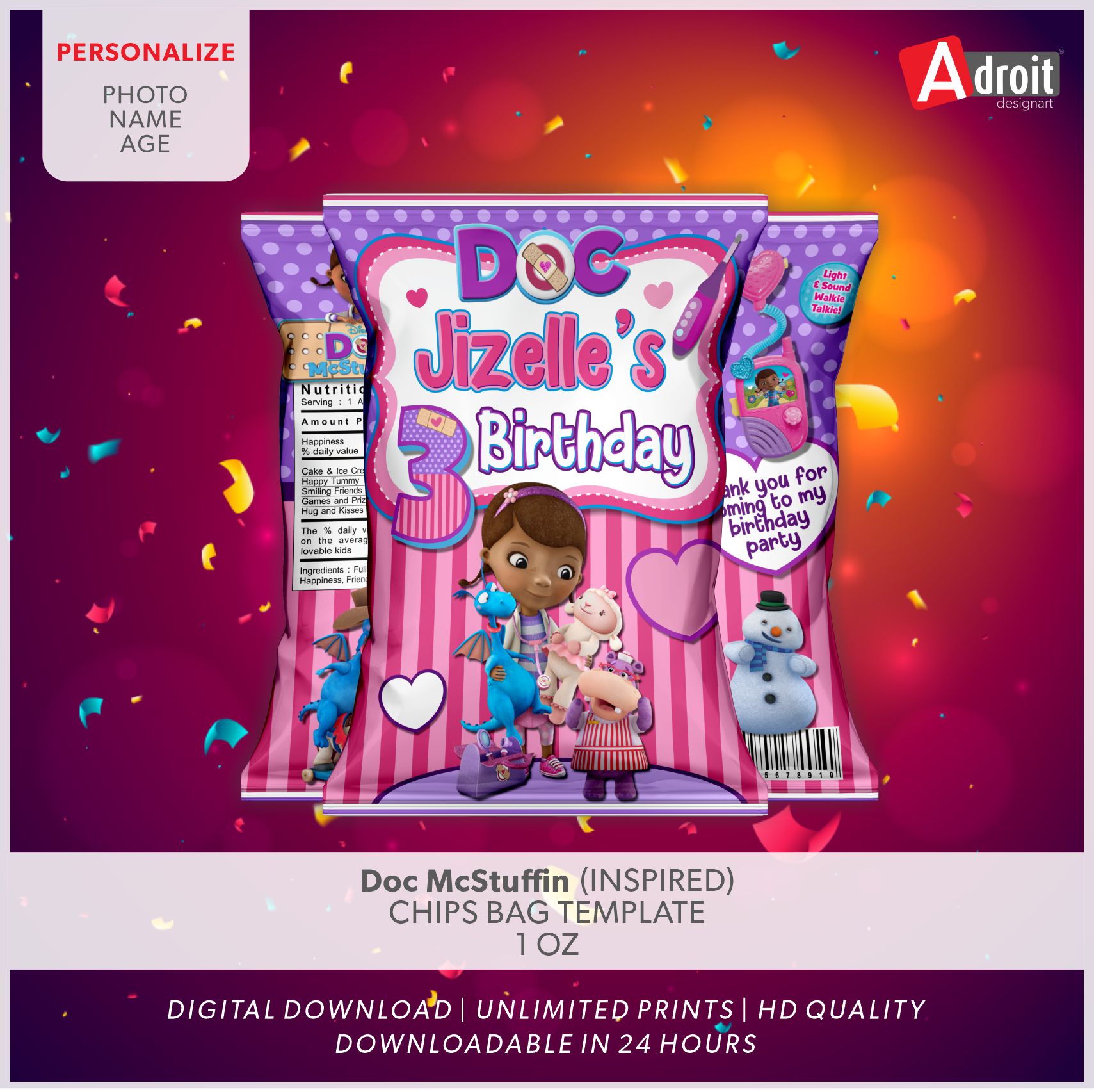 Home » Shop » Doc McStuffin (INSPIRED) CHIPS BAG TEMPLATE